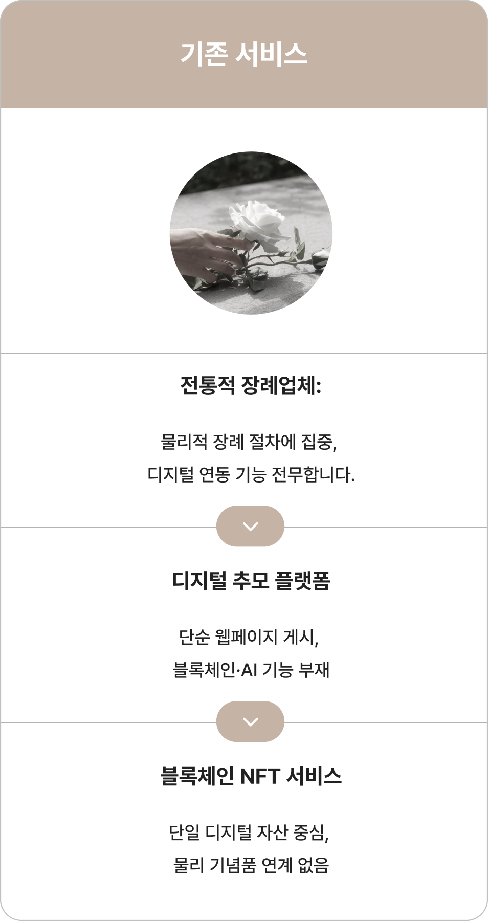 디지털 NFT, AI 교감, 그리고 토큰 시스템까지 기억을 남기고 이어가는 모든 과정을 하나로 묶어 단순한 서비스가 아닌 ‘반려 메모리 생태계 솔루션’ 입니다.