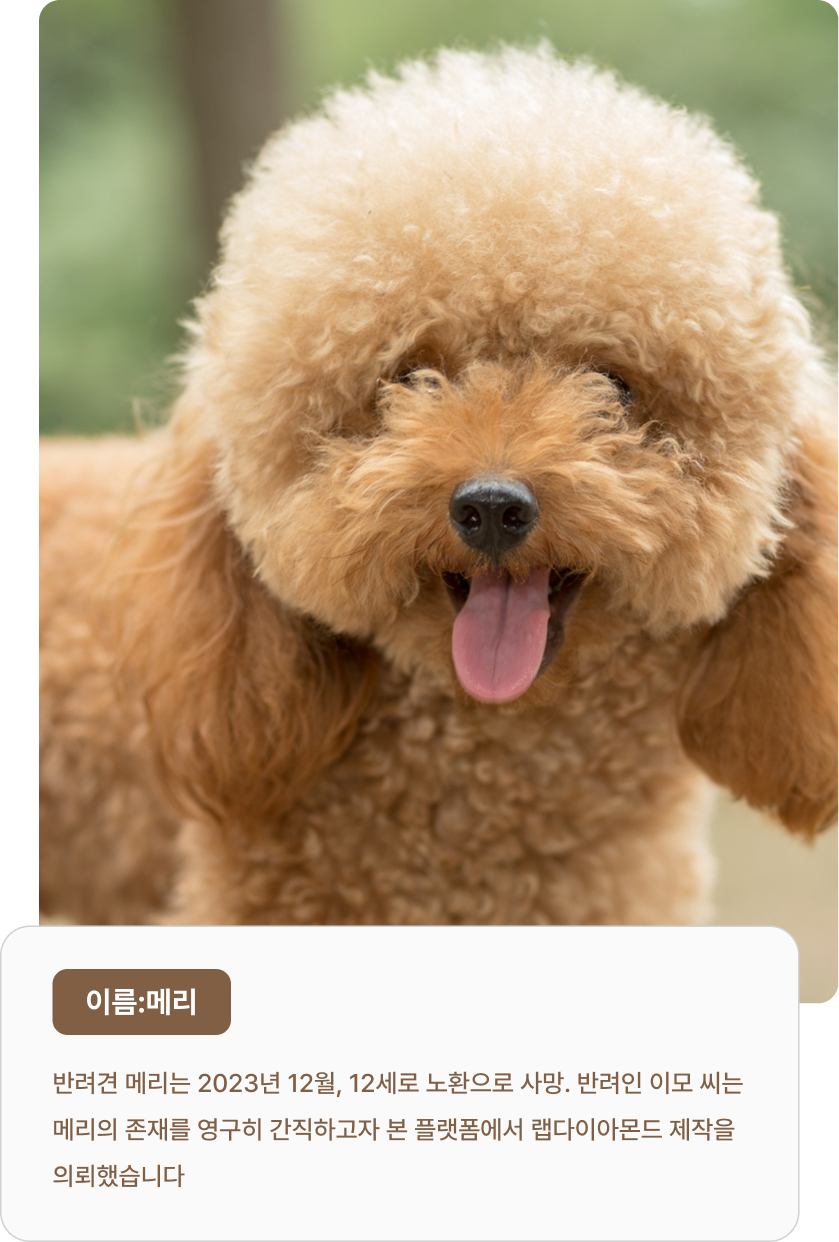 반려동물이 남긴 마음을 가장 안전하고 아름다운 방식으로 보관합니다.